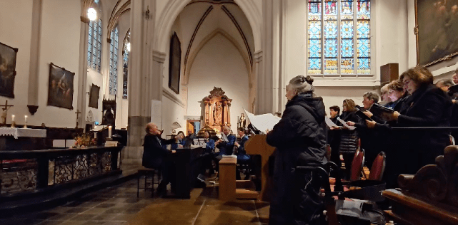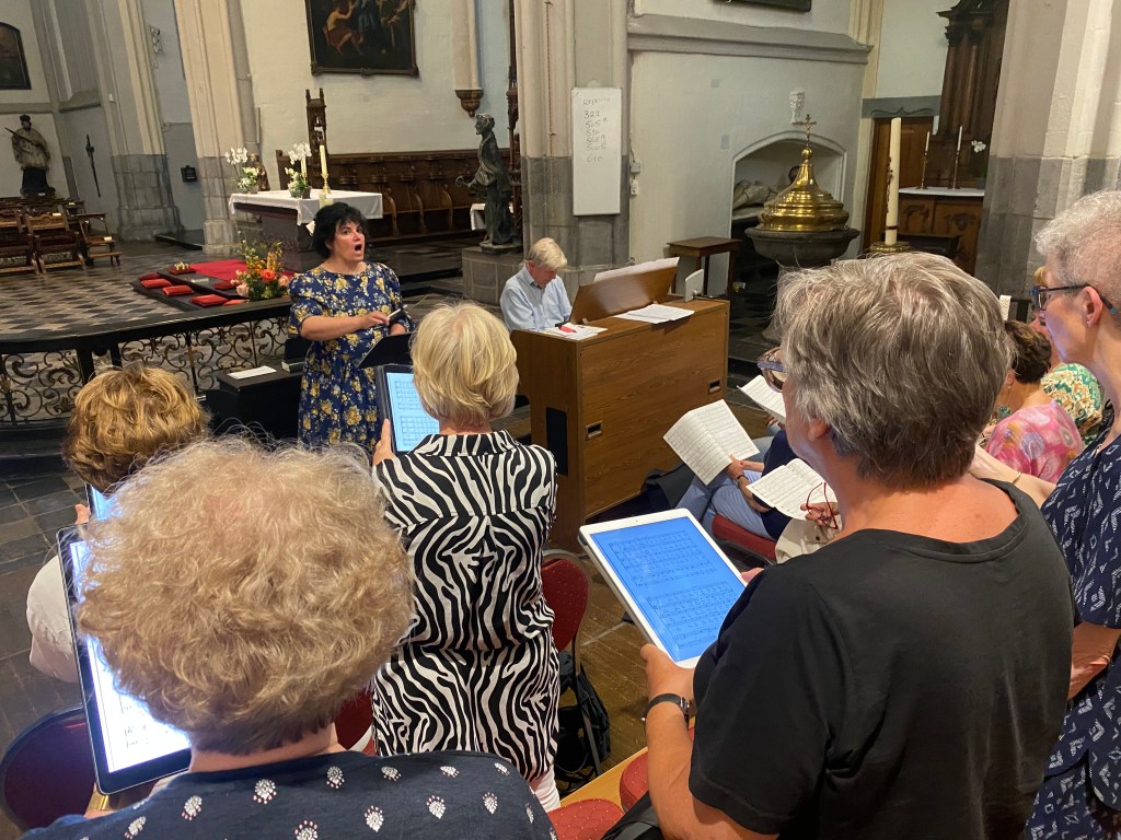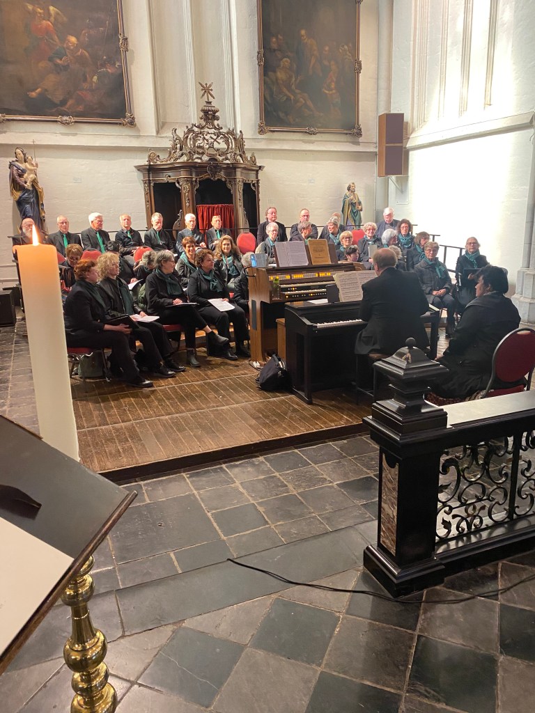 Ons laatste “ optreden “ voor de zomervakantie was wel een heel aparte: Bianca Lenssen was onze dirigente en ze werd geassisteerd door organist Ad Gijzels.